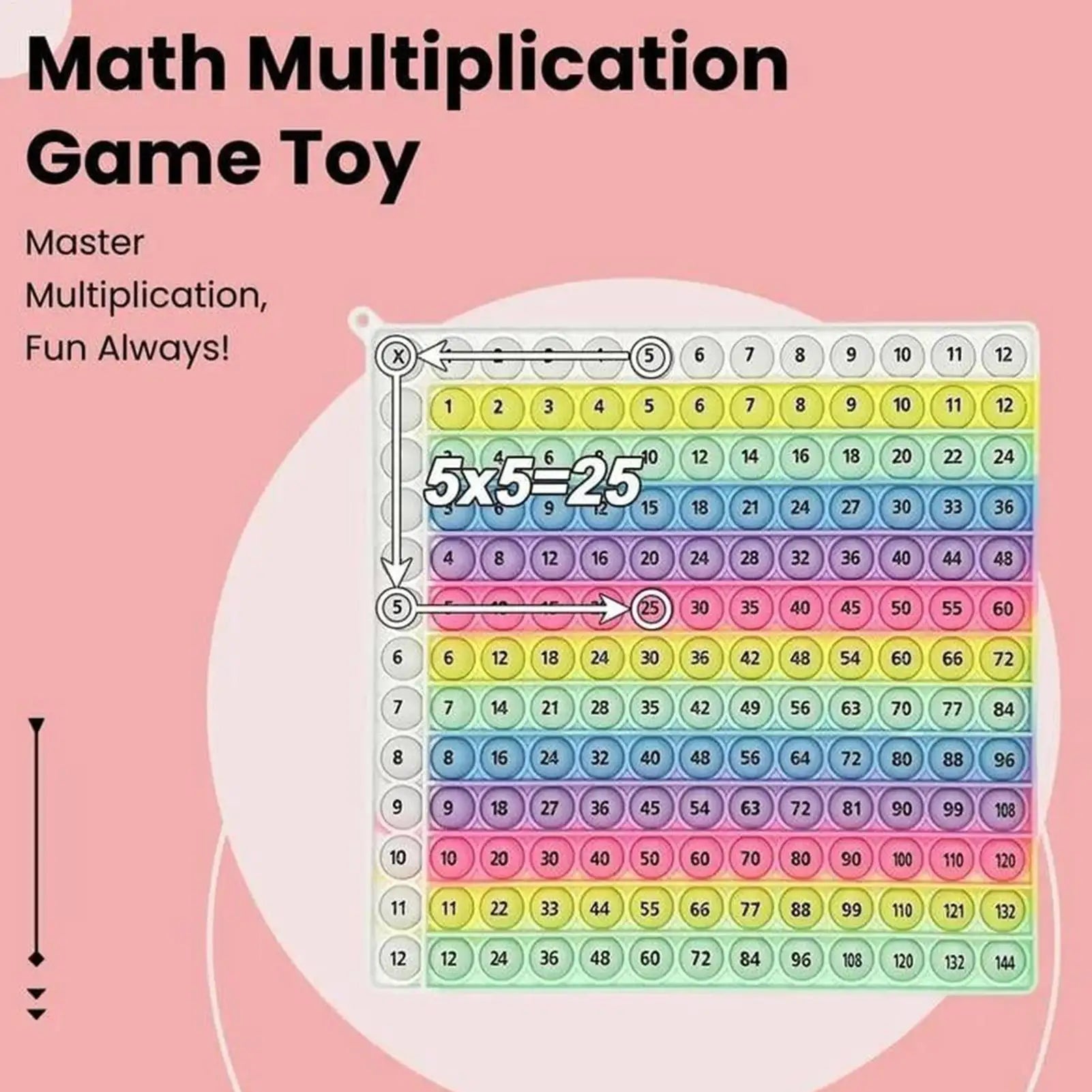 12×12 Multiplication Chart Game – Silicone Math Fidget Toy for Kids
