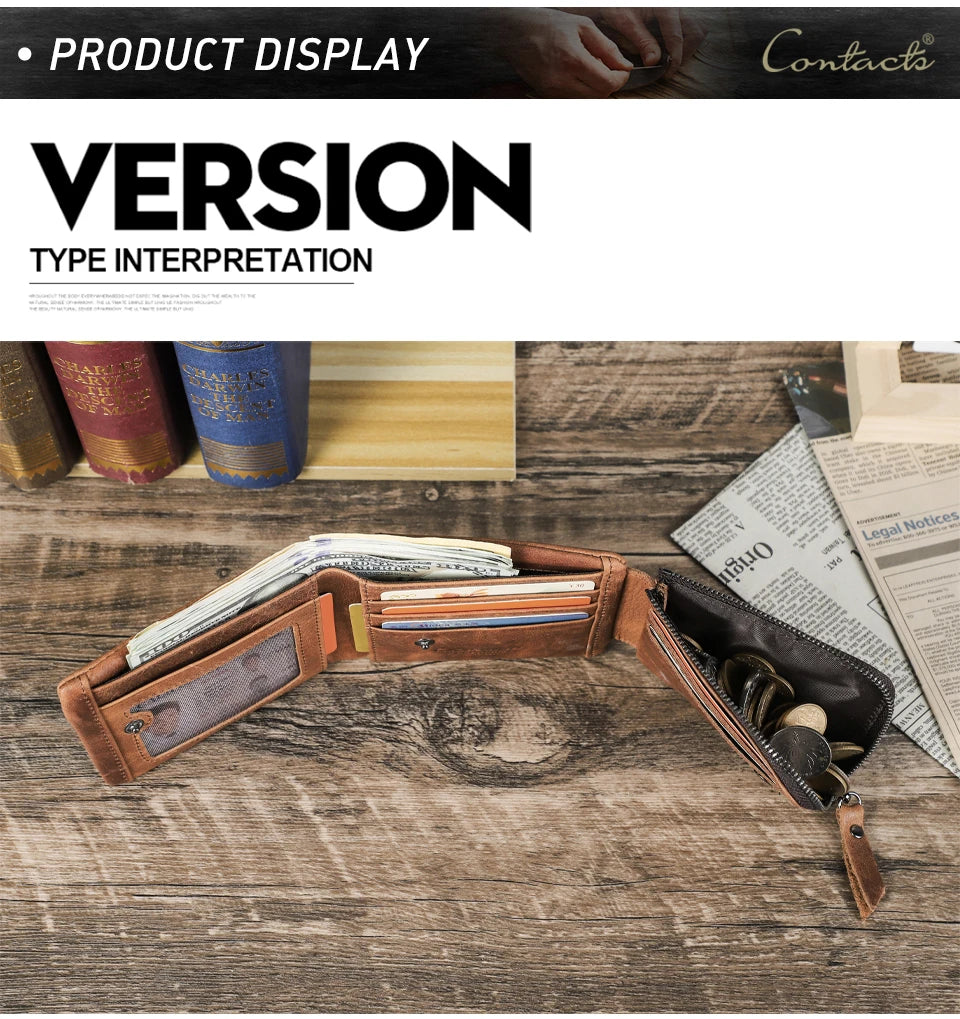 Give him classic style and long-lasting quality with this CONTACT’S Genuine Crazy Horse Leather Trifold Wallet. Made from real cowhide leather, this rugged vintage design softens beautifully over time, developing a unique patina that only true leather can create.